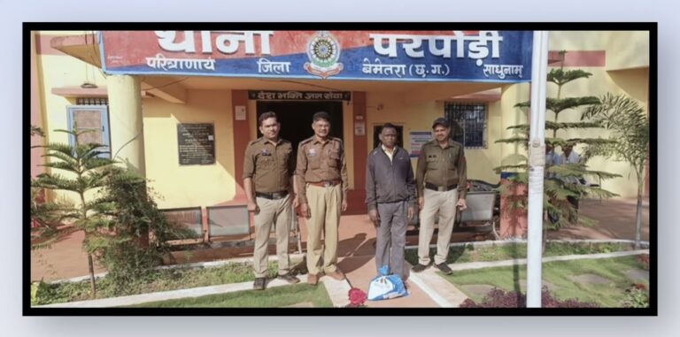 बेमेतरा (छत्तीसगढ़)सायबर सेल एवं थाना परपोडी पुलिस टीम की संयुक्त कार्यवाही।