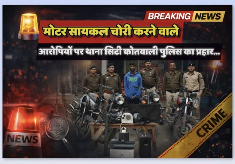 BILASPURमोटर सायकल चोरी करने वाले आरोपियों पर थाना सिटी कोतवाली पुलिस का प्रहार । चोरी की 05 नग मोटर सायकल…