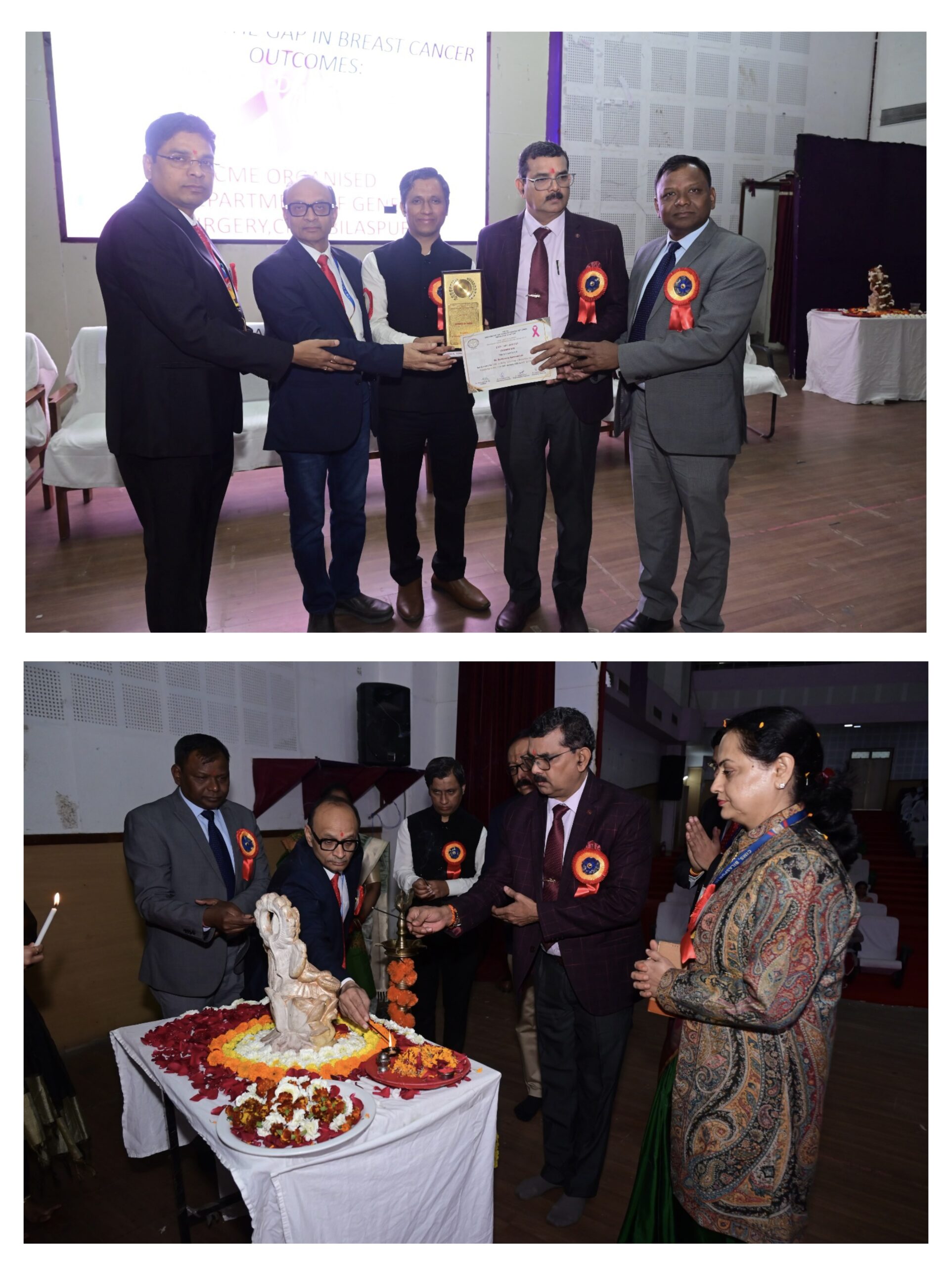 इन हाउस स्पीकर डॉ. चंद्रहास ध्रुव प्रोफेसर रेडिएशन एंड मेडिकल ओंकोलॉजी, डॉ. शहनाज बानो सहायक प्राध्यापक पैथोलॉजी विभाग ने स्तन कैंसर के इलाज – सर्जरी, कीमोथेरेपी, हिस्टोपैथोलॉजी के विषय पर अपने ज्ञान से सबको नवीनतम इलाज हेतु मार्गदर्शन प्रदान किया ।