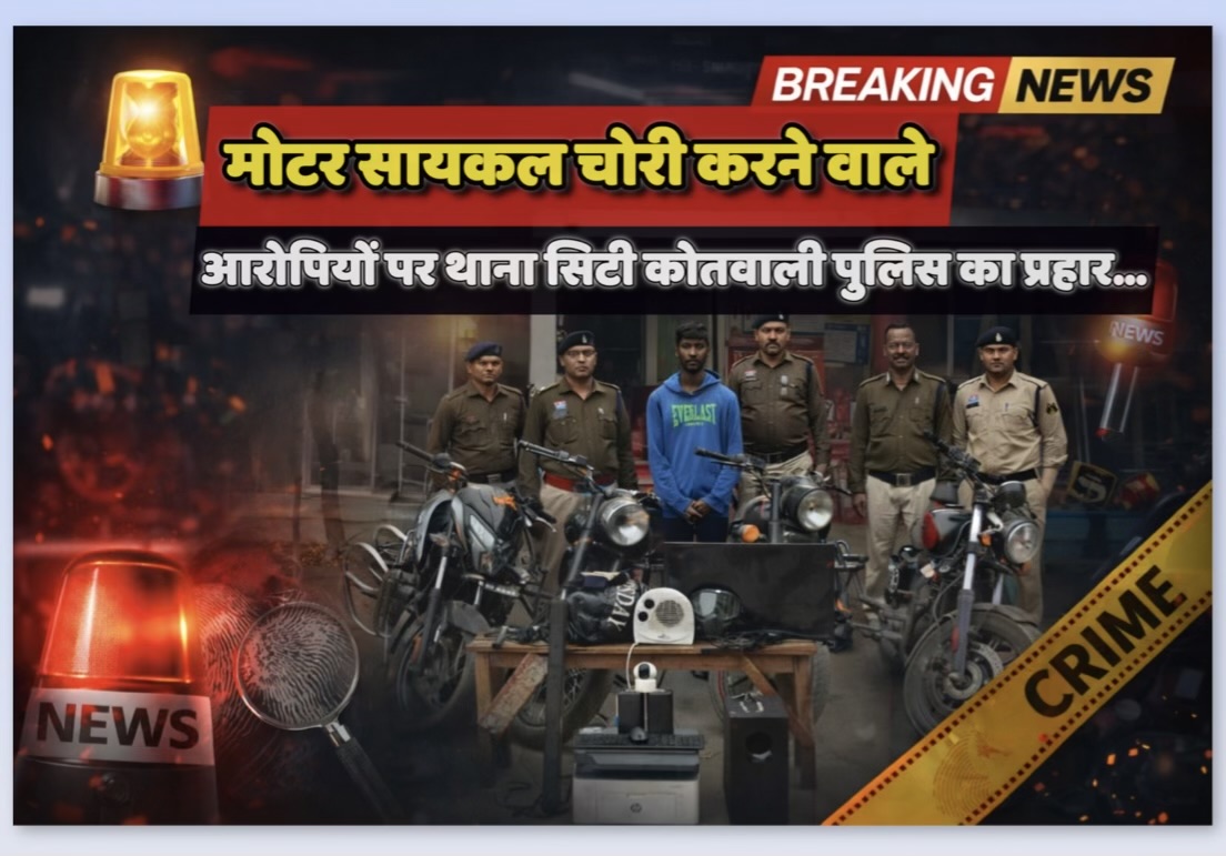 मोटर सायकल चोरी करने वाले आरोपियों पर थाना सिटी कोतवाली पुलिस का प्रहार ।चोरी की 05 नग मोटर सायकल एवं चोरी के मशरूका को किया गया जप्त ।