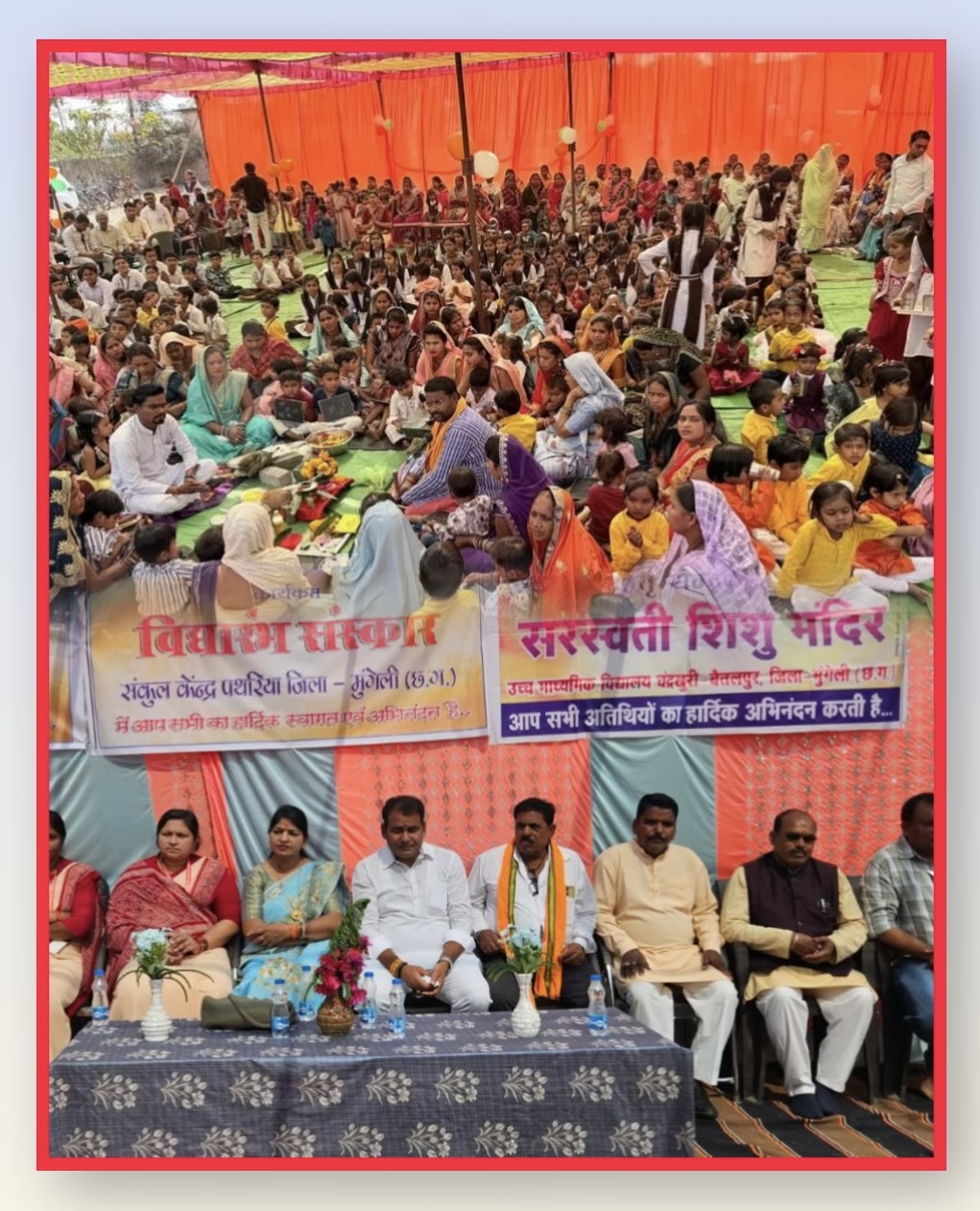 सरस्वती शिशु मंदिर, चंदखुरी–बैतलपुर में विद्यारंभ संस्कार, शिशु नगरी एवं मातृ सम्मेलन का आयोजन गरिमामय वातावरण में संपन्न हुआ। कार्यक्रम में 25 पोषक ग्रामों से आई माताओं ने मातृ सम्मेलन में उत्साहपूर्वक सहभागिता की, जहाँ मातृ शक्ति के महत्व पर विशेष रूप से प्रकाश डाला गया।