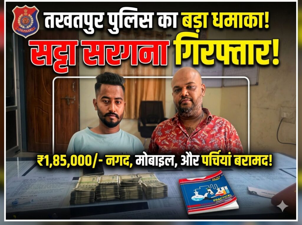 इसी कड़ी में 22 अप्रैल 2026 को मुखबिर से सूचना मिली कि तखतपुर नया बस स्टैंड स्थित वेलकम गेट के पास कुछ व्यक्ति अंकों पर दांव लगाकर सट्टा खिला रहे हैं।सूचना मिलते ही अतिरिक्त पुलिस अधीक्षक (ग्रामीण) श्रीमती मधुलिका सिंह एवं एसडीओपी कोटा श्रीमती नूपुर उपाध्याय के मार्गदर्शन में थाना प्रभारी विवेक कुमार पाण्डेय ने टीम गठित कर मौके पर रेड मारी।आरोपी और बरामदगीपुलिस ने मौके से अभिषेक सिंह ठाकुर (35 वर्ष) को सट्टा खिलाते हुए रंगे हाथों पकड़ा। तलाशी लेने पर उसके पास से:₹1,85,000/- नगदएक मोबाइल फोनसट्टा अंक लिखी हुई पेन-कॉपी और पर्चियां जप्त की गईं।पूछताछ के दौरान आरोपी ने स्वीकार किया कि वह अपने साथी अस्मित गुप्ता (22 वर्ष) के साथ मिलकर संगठित रूप से सट्टे का कारोबार कर रहा था। पुलिस ने तत्काल कार्रवाई करते हुए दूसरे आरोपी अस्मित गुप्ता को भी हिरासत में ले लिया। दोनों आरोपी मुंगेली के शंकर वार्ड मल्हापारा के निवासी हैं।कड़ी धाराओं में कार्रवाईपुलिस ने दोनों आरोपियों के विरुद्ध छत्तीसगढ़ जुआ प्रतिषेध अधिनियम की धारा 6 और बीएनएस (BNS) की धारा 112 के तहत अपराध पंजीबद्ध किया है। संगठित अपराध में संलिप्त होने के कारण पुलिस ने कड़ी कार्रवाई करते हुए दोनों को न्यायिक रिमांड पर जेल भेज दिया है।इनकी रही मुख्य भूमिकाइस सफल कार्रवाई में थाना प्रभारी निरीक्षक विवेक कुमार पाण्डेय, सउनि रमेशकुमार ओरके, आरक्षक ओंकार राजपूत, कलेश्वर यादव, संतोष पोर्ते, राजकुमार, हरिश यादव और नरेश निराला का विशेष योगदान रहा।